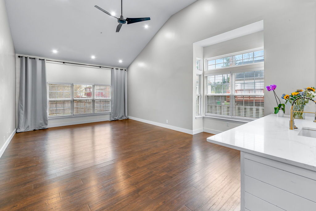 Towards the rear of the flex room, the patio doors open to a generously large sized backyard with full fencing for added seclusion. The covered patio provides the perfect setup for outdoor relaxation or entertaining.