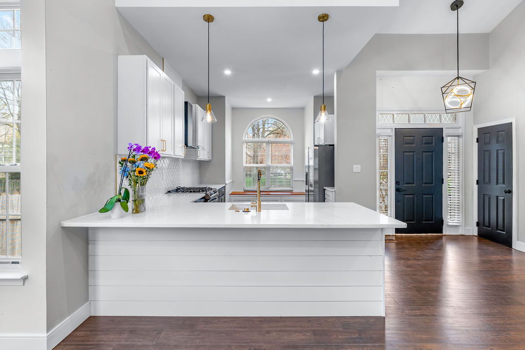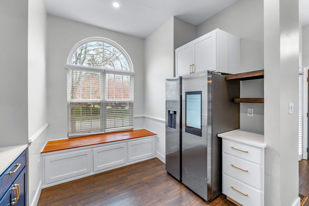 Step inside to be welcomed by vaulted ceilings and an open, airy layout. The main level features beautiful hardwood flooring throughout, creating a warm and cohesive feel. The kitchen is thoughtfully updated with stainless steel appliances and modern finishes, providing both style and functionality. Granite counters align all surfaces with added bar stool seating. Radius window adds additional natural light to fill the area.