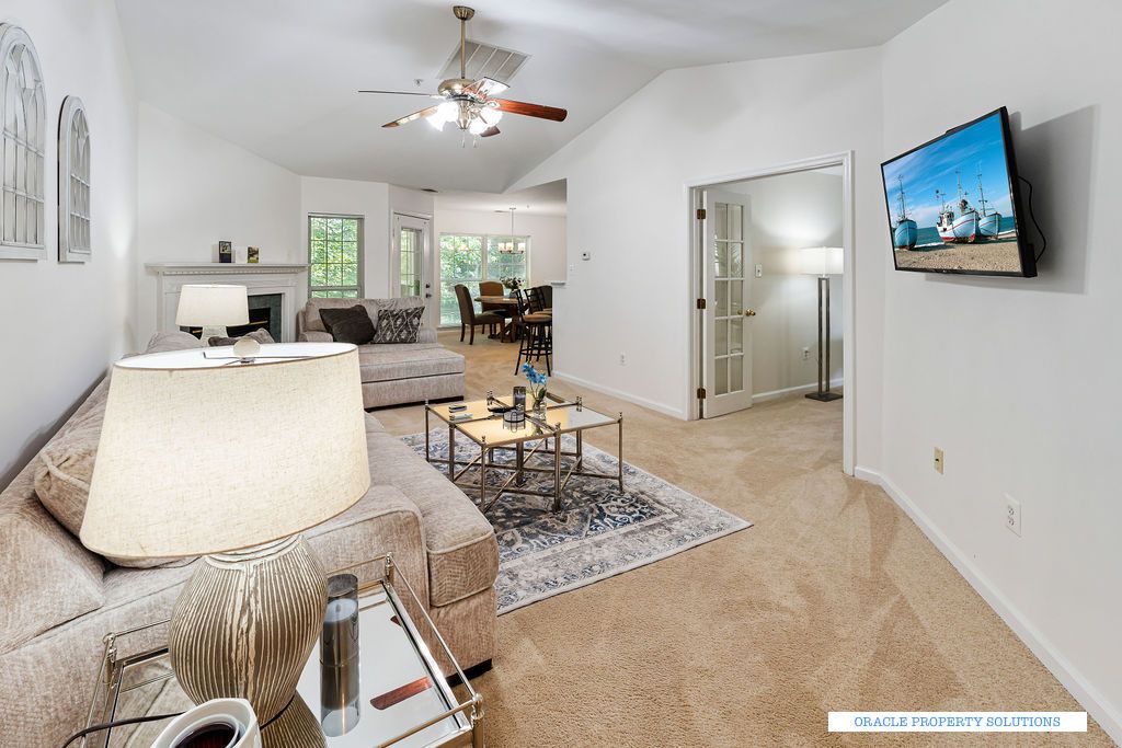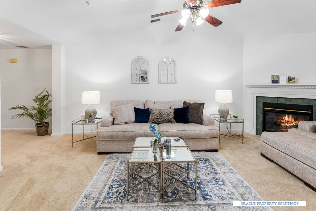 3 BR 2BA clean 1 level condo with garage boasts updated charm and living with many shopping & commercial areas within close vicinity. Cathedral ceiling natural light living room seating and dining area combined with a gas fireplace for entertaining guest.